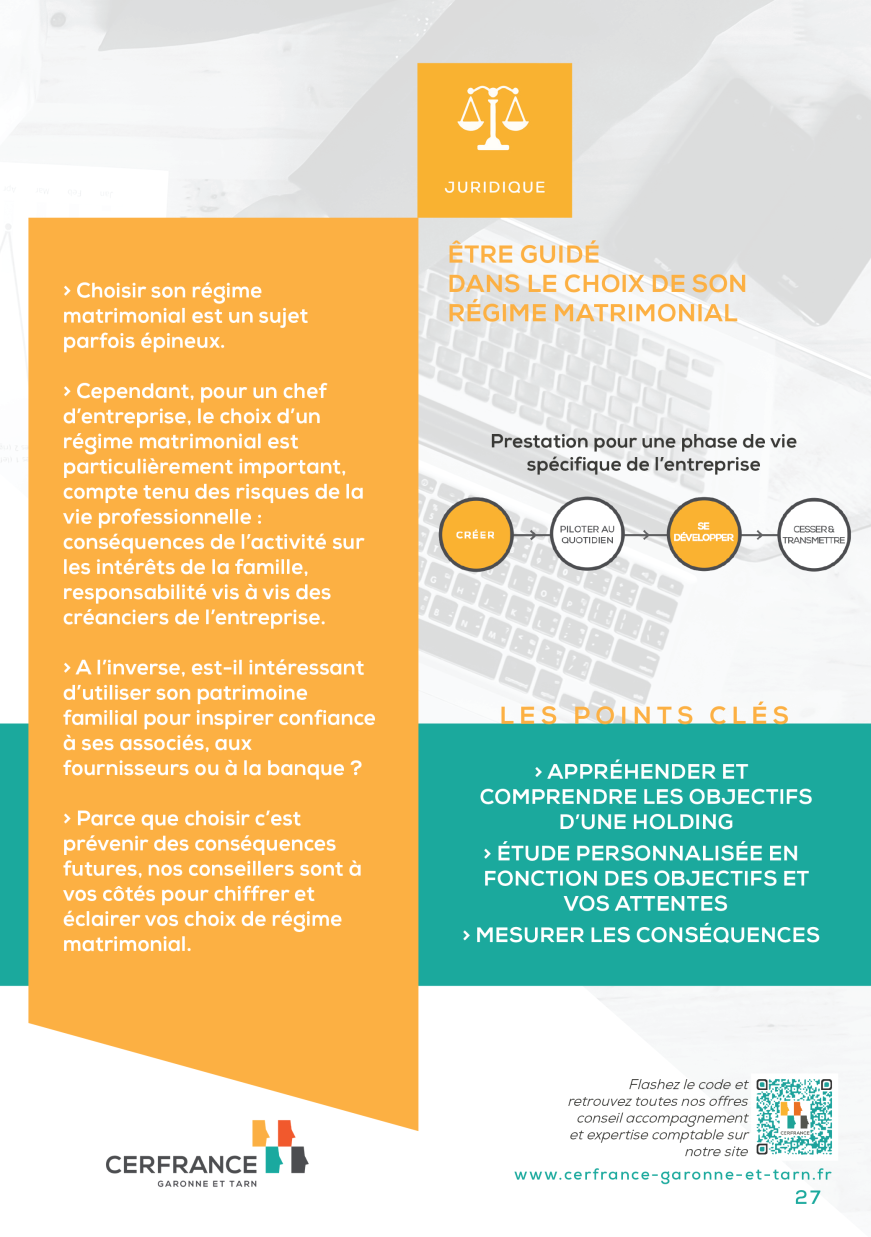 Cependant, pour un chef d’entreprise, le choix d’un régime matrimonial est particulièrement important, compte tenu des risques de la vie professionnelle : conséquences de l’activité sur les intérêts de la famille, responsabilité vis à vis des créanciers de l’entreprise.